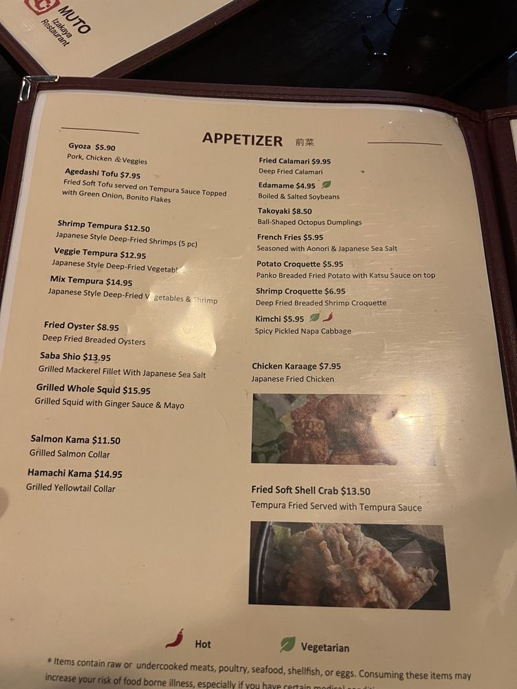 Muto Izakaya Restaurant in Lynnwood, WA is a hidden gem offering a variety of Japanese cuisine. With a casual and intimate atmosphere, it's perfect for lunch or dinner with friends. The menu includes appetizers like gyoza and chicken karaage, fresh salads, and flavorful entrees like chicken teriyaki and mixed tempura. Customers praise the attentive service and delicious food, with particular mentions of the creamy mentaiko udon and spicy tuna roll. The staff is friendly and the restaurant is neat and tidy, creating a cozy dining experience. For a taste of authentic Japanese flavors, Muto Izakaya is a top choice in the Lynnwood area.